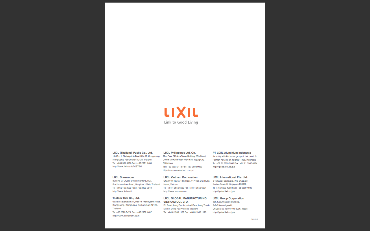 ในปี ค.ศ. 2013 บริษัทฯ ได้รับความไว้วางใจให้เป็นตัวแทนจำหน่ายประตูหน้าต่างอลูมเนียมยี่ห้อ Tostem โดยบริษัท ลิคซิล (ประเทศไทย) จำกัด เป็นสินค้าประตูหน้าต่างอลูมิเนียมคุณภาพสูง ขายดีอันดับหนึ่ง ในประเทศญี่ปุ่น ที่มีคุณสมบัติลดเสียงจากภายนอก ระบายน้ำได้ดีและใช้อุปกรณ์ที่มีคุณภาพสูง ทำสีด้วยวิธีการ Anodize ฝังลึกเข้าไปในเนื้อวัสดุ ผลิตทุกขั้นตอนด้วยมาตรฐานจากประเทศญี่ปุ่น